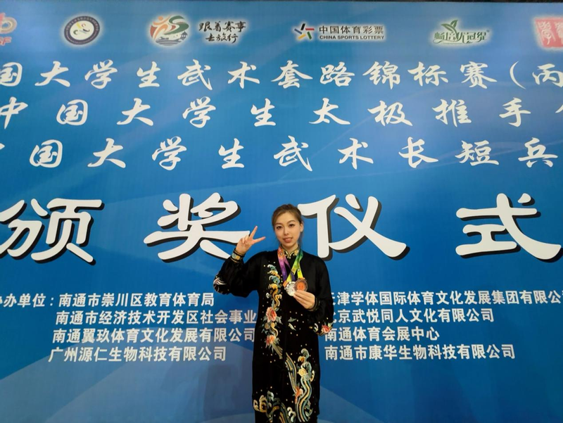 我校高水平武术队在总教练石秀廷老师带领下,4名运动员王珺霖、于雯赫、王艺涵、徐嘉仪参加10个项目的角逐,获两金两银两铜。其中,队员王艺涵在太极器械、养生功法、八法五步太极拳项目中摘两金一银;王珺霖在太极器械、八卦掌、其他养生太极拳项目中获一银两铜。同时,石秀廷老师获“体育道德风尚奖教练员”称号,4名队员均获“体育道德风尚奖运动员”称号。
