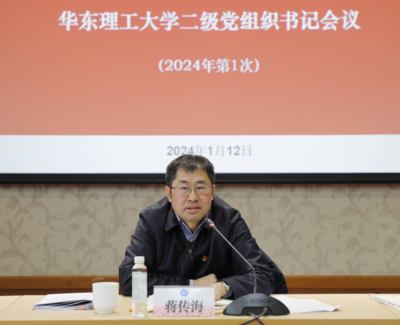 1月12日下午,学校党委召开2024年第1次二级党组织书记会,总结2023年工作落实情况,研究部署2024年党委重点工作。校党委书记蒋传海主持会议并讲话,校党委副书记沈海涛,校党委副书记、纪委书记龚跃,校党委常委、宣传部部长夏江雯以及各二级党组织书记、党群部门负责同志参加会议。